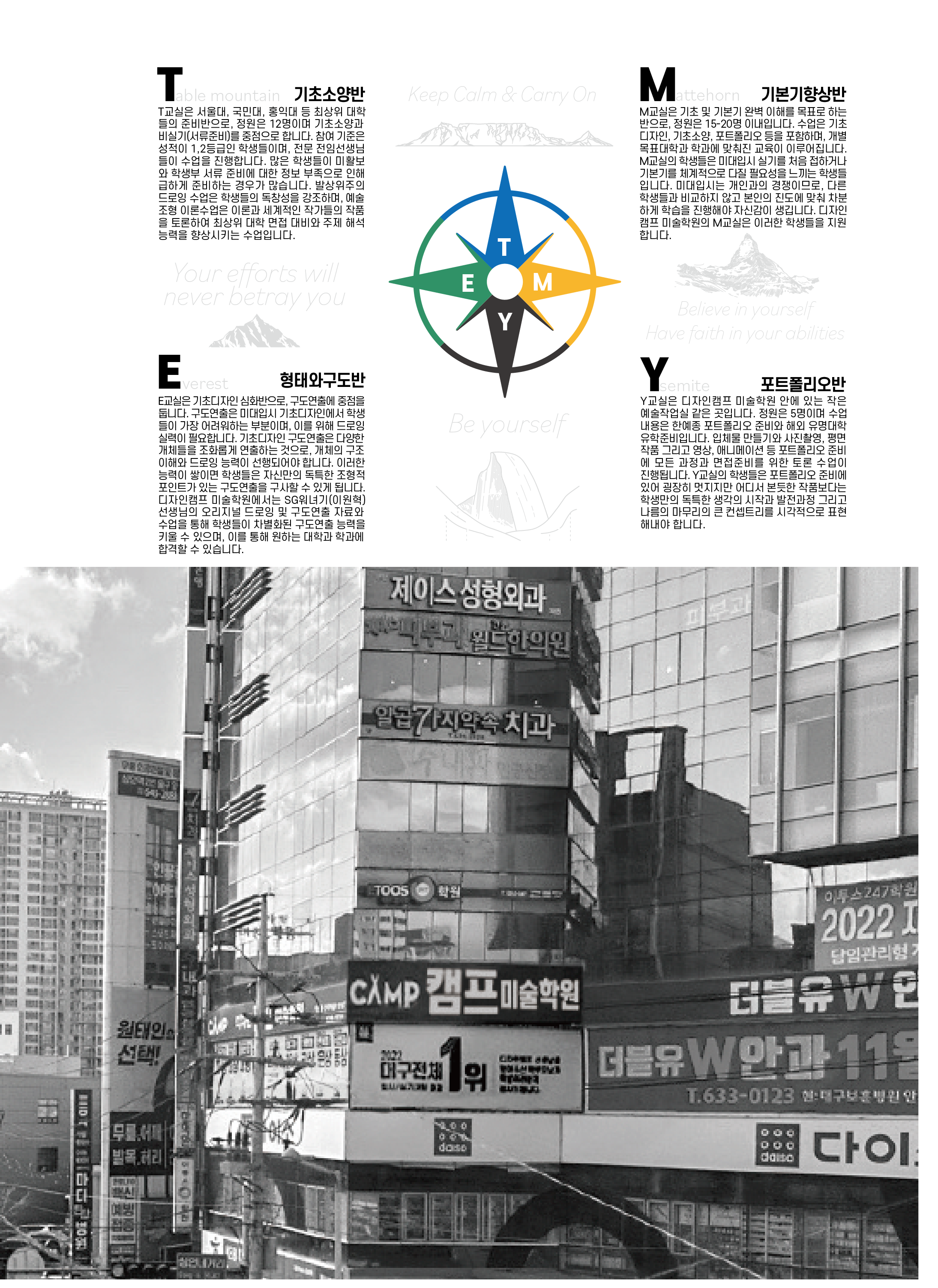 대구 상인 디자인캠프 미술학원입니다. 입시 미술에서 가장 중요한 것은 무엇일까요? 반짝하는 한 해의 결과가 아닙니다. ‘결과의 꾸준함’이야말로 그 학원의‘시스템’이 얼마나 견고한지를 증명하는...