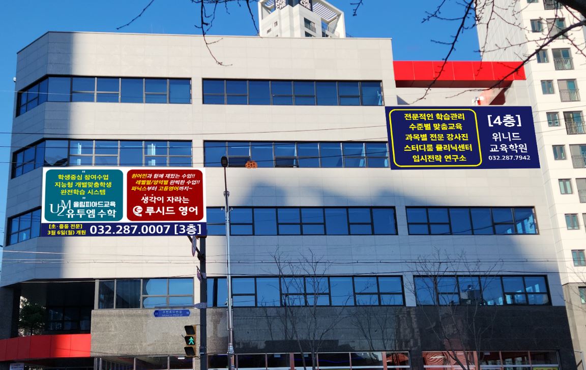 오늘 포스팅할 작업 현장은 인천 부개동에 위치한 유투엠수학 & 루시드영어학원을 함께 운영하는 내신 입시 국영수과전문 학원 위니드 교육학원이에요. 외부 LED채널간판과 경관바간판 창문썬팅을 함께 진행한...