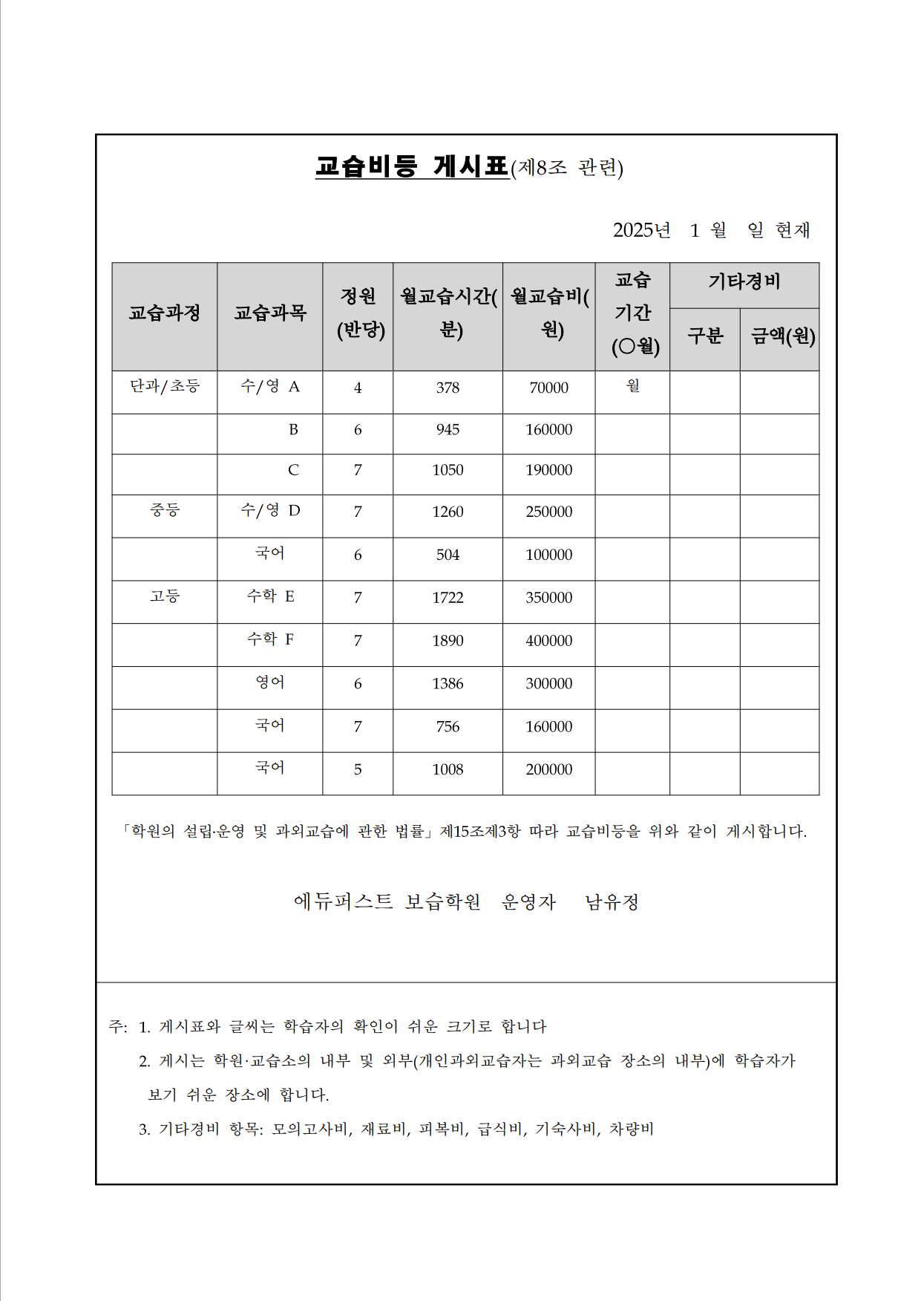 퍼스트에듀(First edu)학원 상세정보