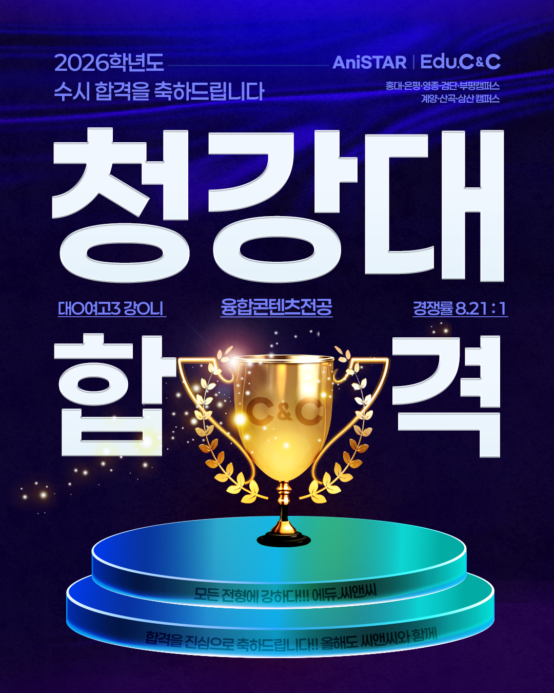 건국대 미술대 영상영화학과, 산업디자인 학과, 의상디자인 학과, 리빙디자인학과, 커뮤니케이션... 마지막으로 살짝 홍보를 한다면 저희 계양씨앤씨미술학원[부평입시 직영 캠퍼스, 산곡 캠퍼스, 영종...