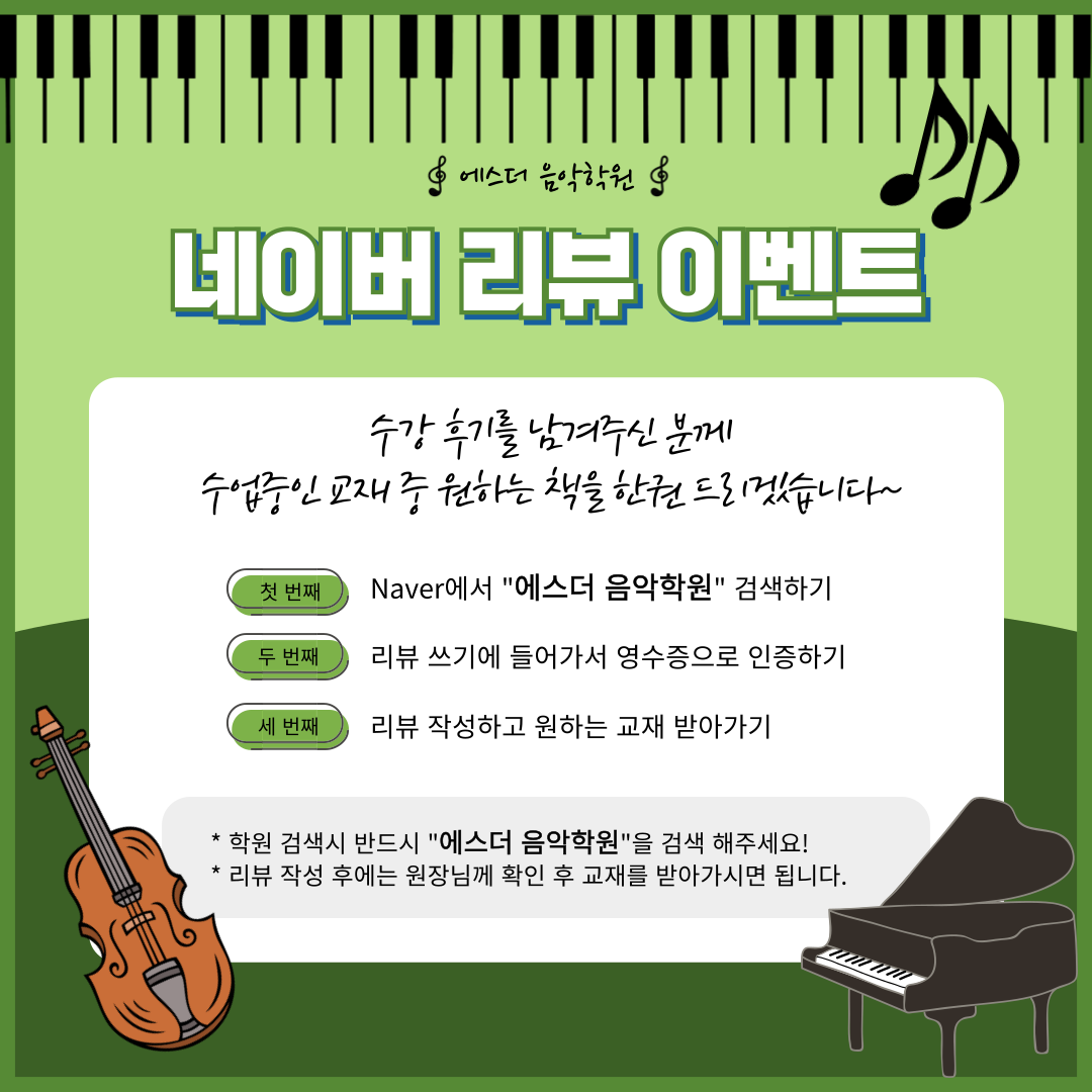 같은 학원에서 배우니 좀더 아이도 집중해서 배우는듯하다 에스더 리 음악원 홍보하려는 건 아니지만 워낙 잘가르치고 영국서 오래 공부하셔서 청라서 몇안되는 제대로 배울수 있는 학원이다 끝나기 10분전에는...