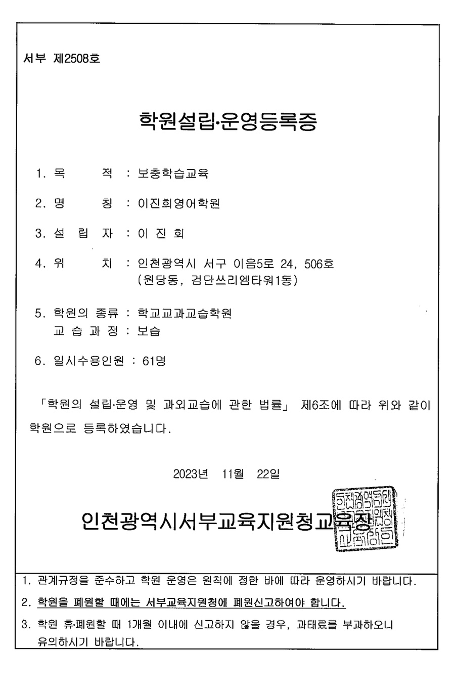이진희영어학원 상세정보