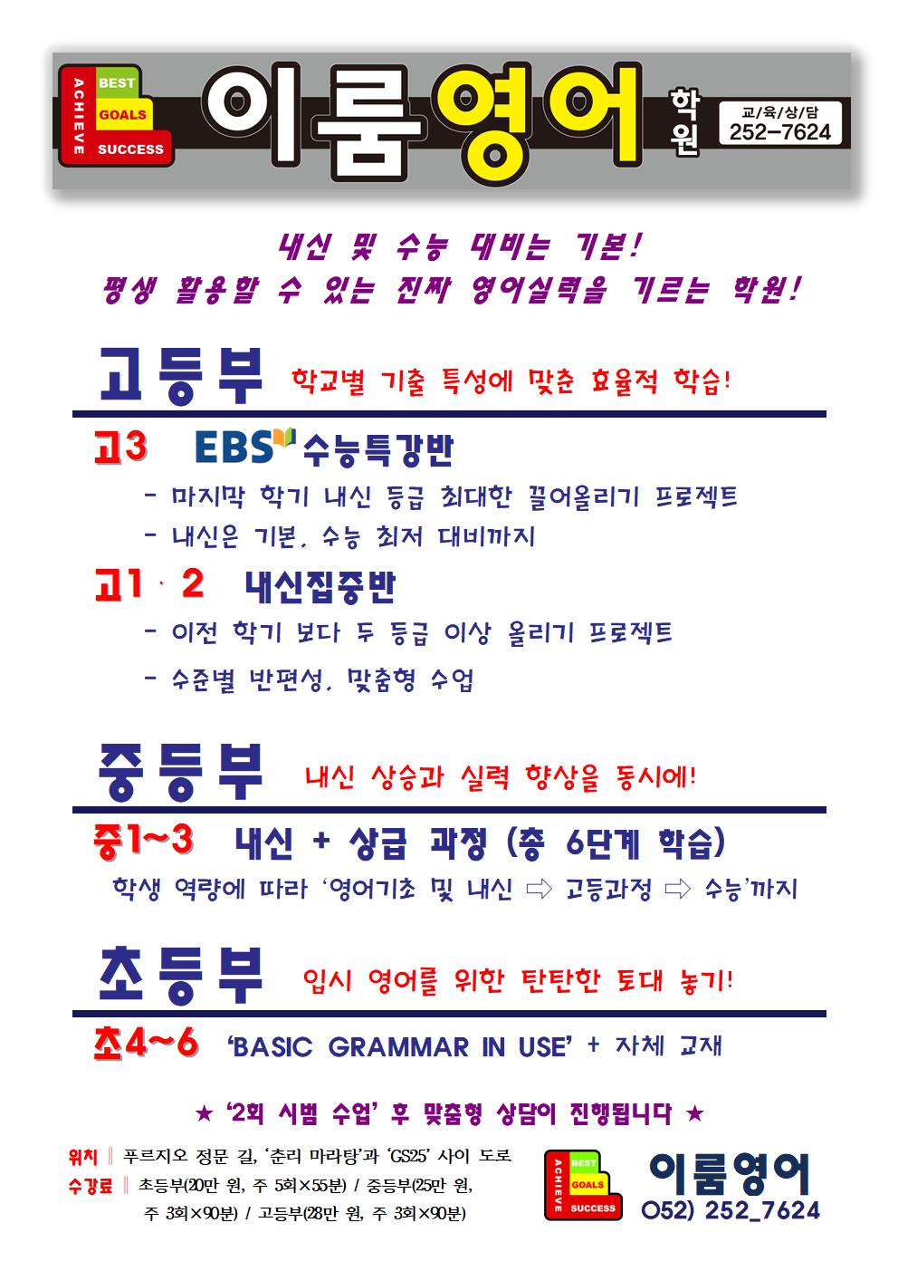창원용호이룸영어학원... 학원/고등내신1등급/대치동영어