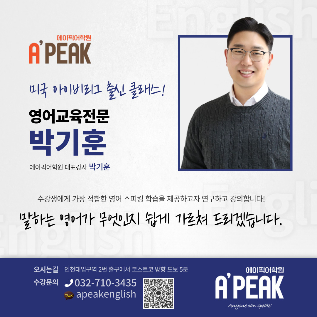 인천송도성인영어 실력이 올라갔던 에이픽어학원