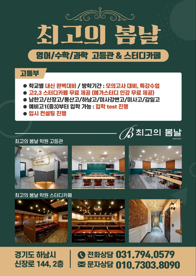 최고의봄날학원 추천 송도 최고의 수학학원, 최고의봄날학원은 정말 추천할 만한 곳이에요. 편안한 학습 환경과 개인 맞춤형 수업, 그리고 1:1 소통이 잘 이루어지니 효과적인 학습을 보장해요. 아이와 부모...