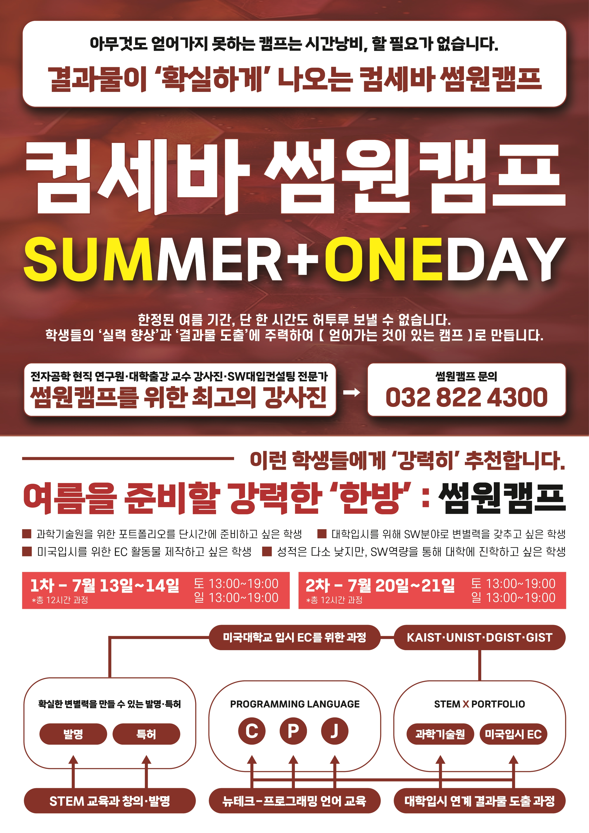 우리 아이의 숨겨진 잠재력을 깨울 수 있는 절호의 기회! 컴세바 IT 입시 학원의 무료 체험수업에 지금 바로 상담 예약하세요! 상담 예약 문의: 031-8003-8361 "코딩, 컴세바 아이티입시학원에서 시작하면 다릅니다!"