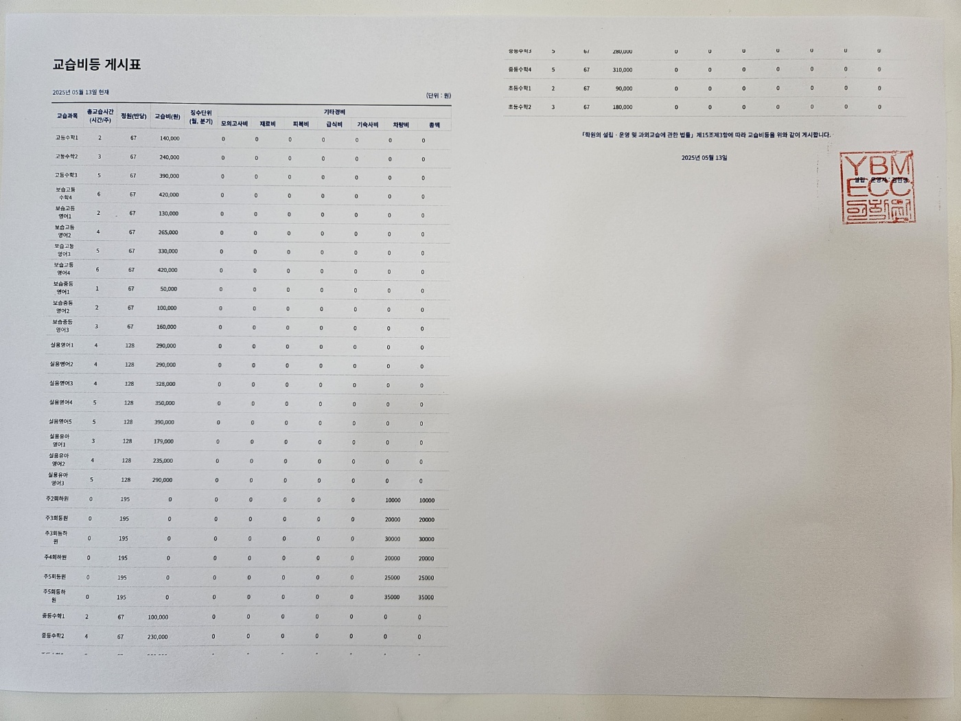 YBM ECC 국제어학원 상세정보