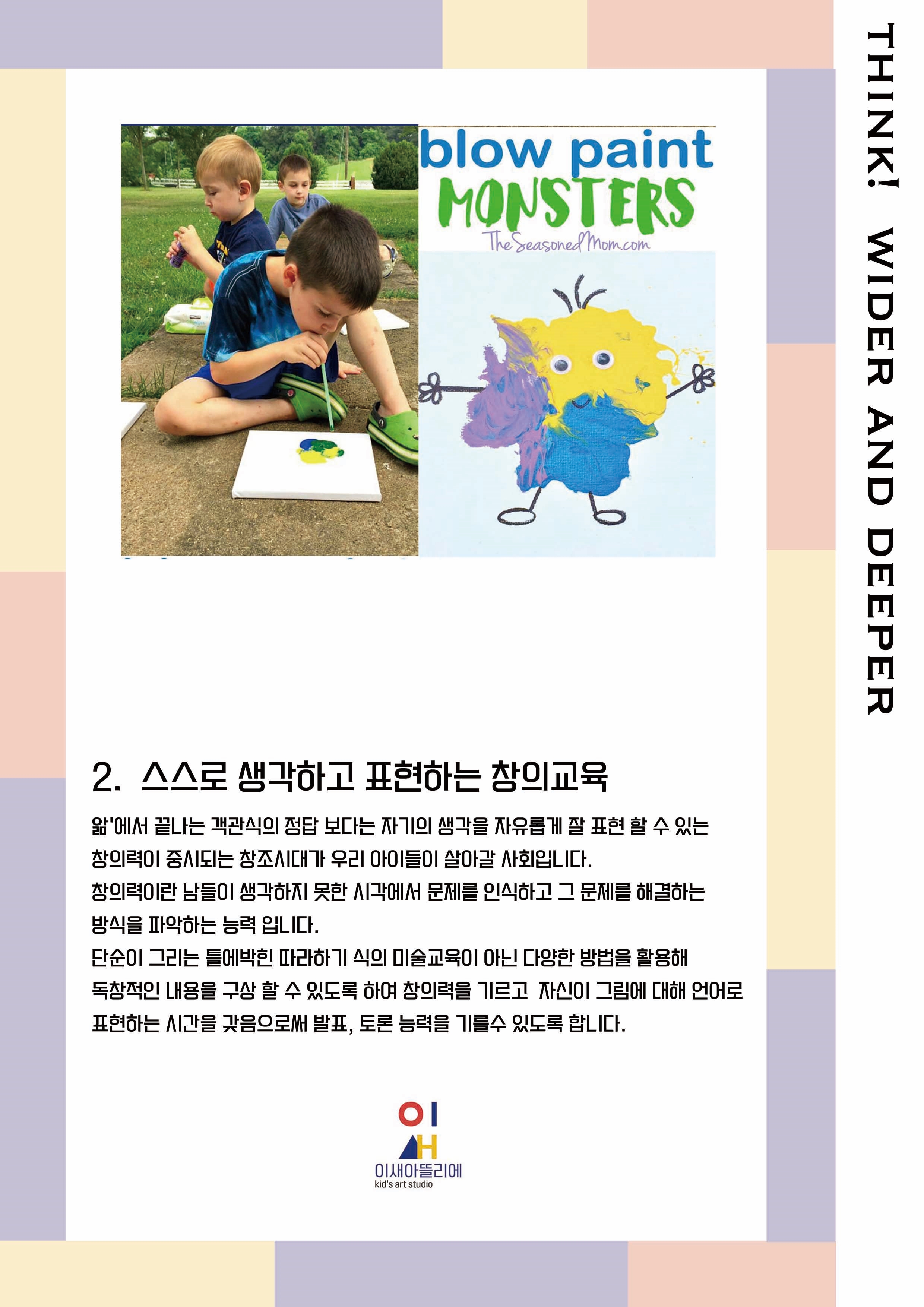 우리 이새둥이들♡ 이런 수업으로 내 작품에 대한 책임감과 애정이 자연스럽게 생기게 됩니다! 진도에 급급하지 않고 자신만의 속도로 꾸준히 즐겁게 그림그리는 미술수업을 추구하는 이새미술학원입니다!