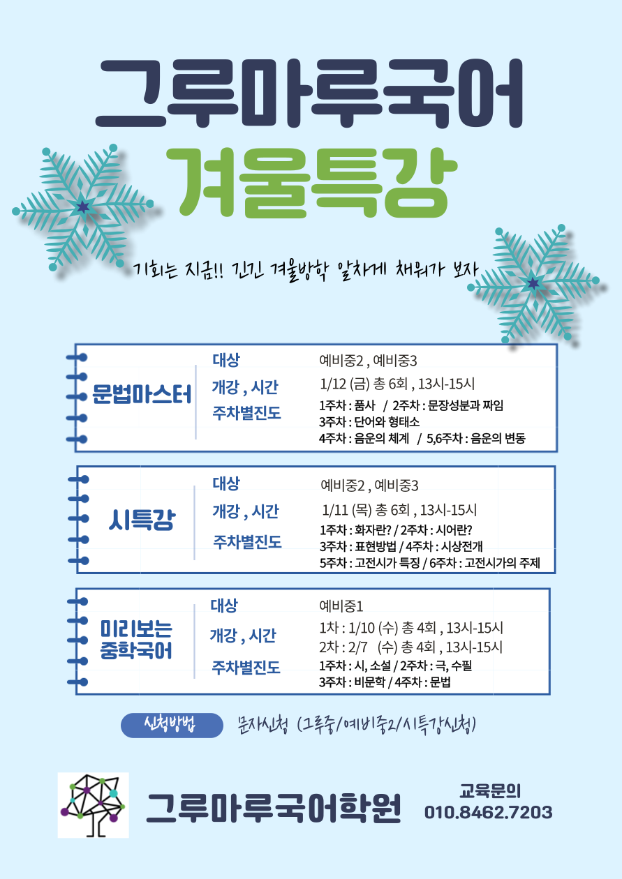 2026년 생각그루학원 겨울방학 운영안내
