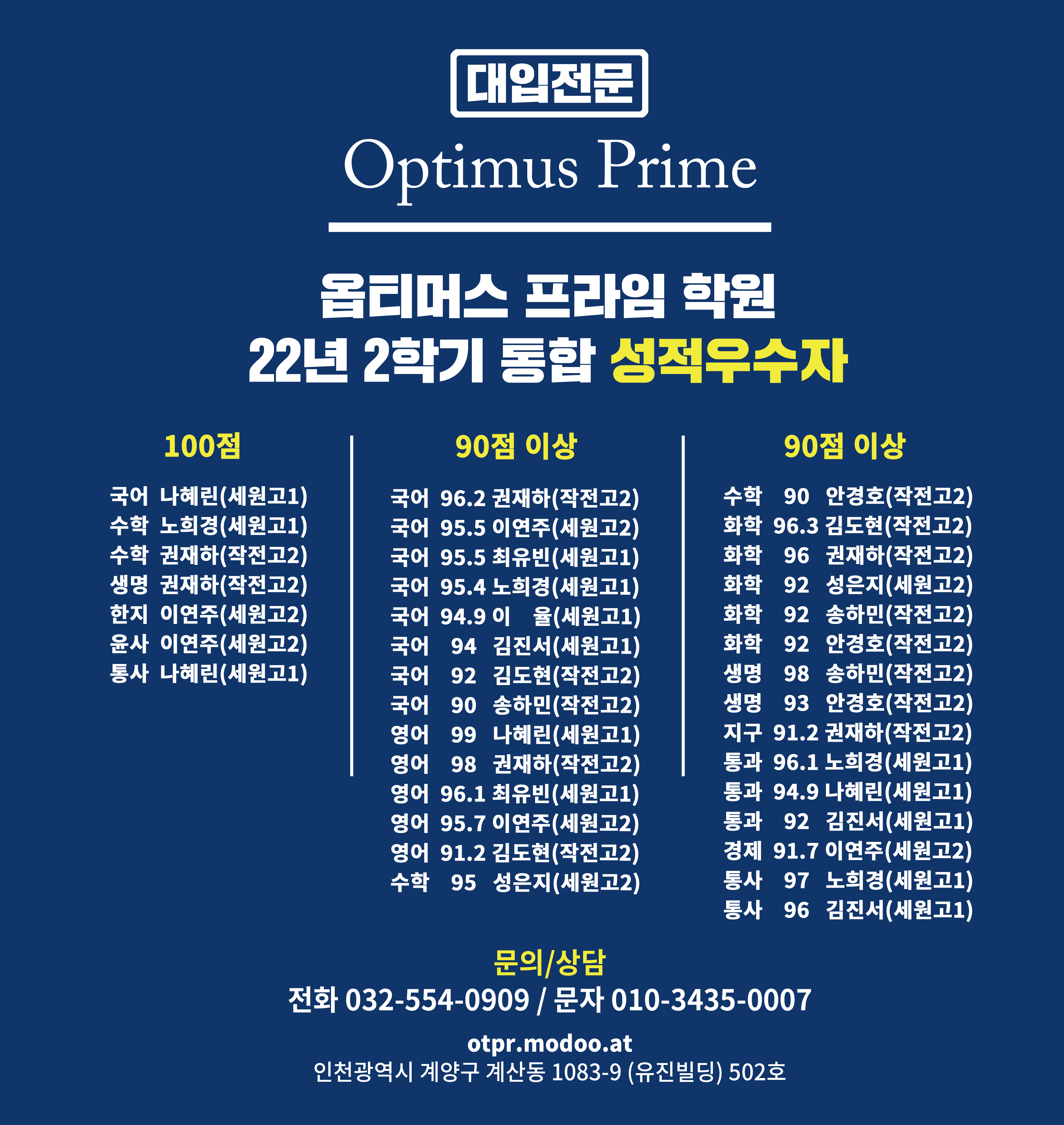 입시 전문 종합 수학학원 BEST 추천 인천 계양구에는 검증된 입시 전문 수학학원들이 여러 곳 있습니다.... 학원명 위치 특징 옵티머스프라임학원 계양구 오조산로45번길 3, 502호 입시 중심 커리큘럼 운영...