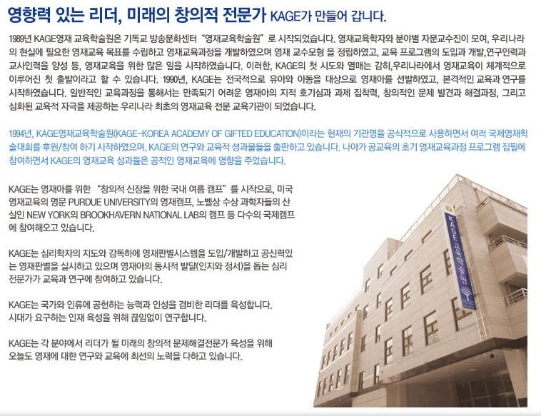 [교육정보] KAGE 영재교육학술원(동탄본원)에 대해...