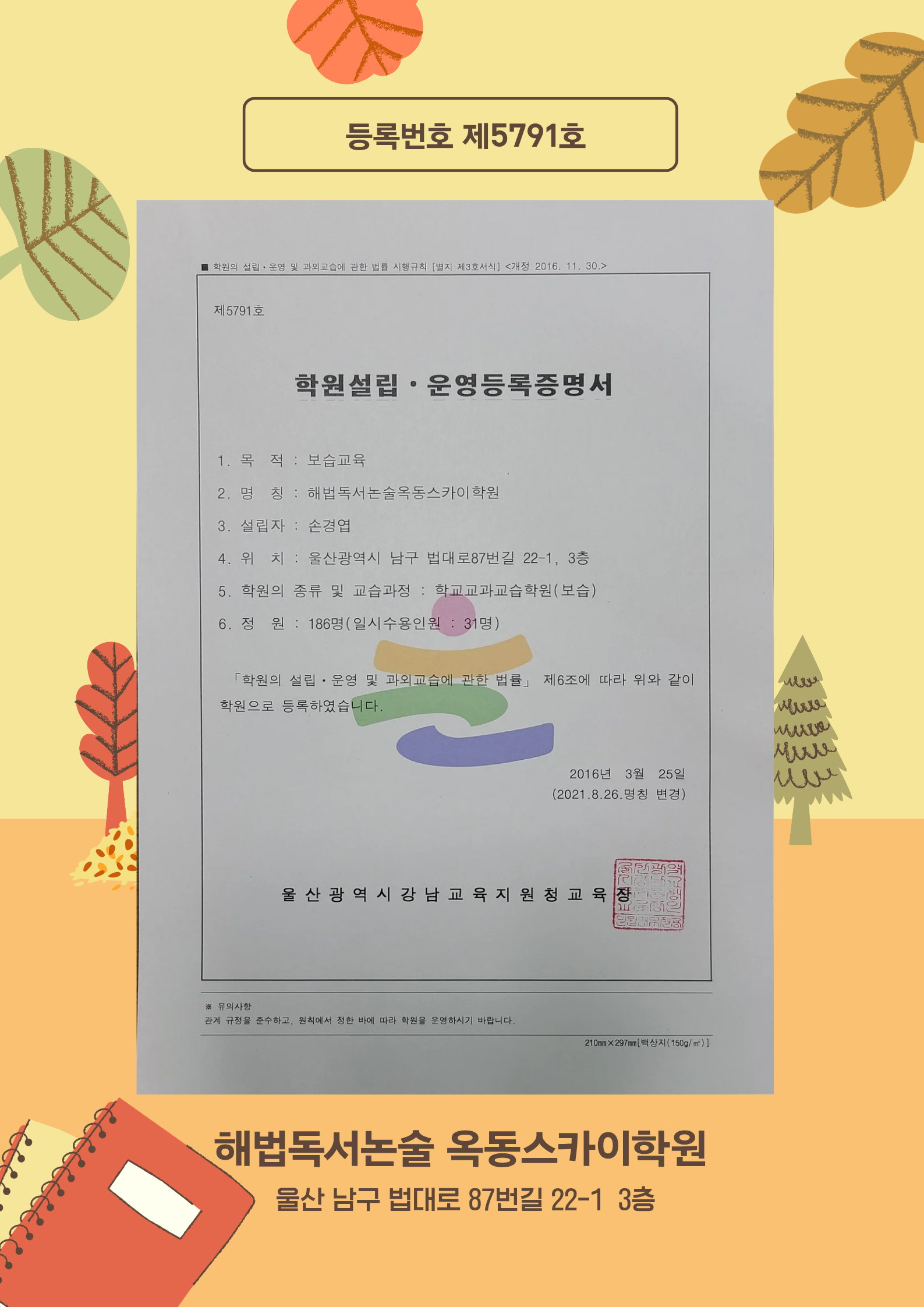 해법독서논술 옥동스카이학원 가을학기 개강사