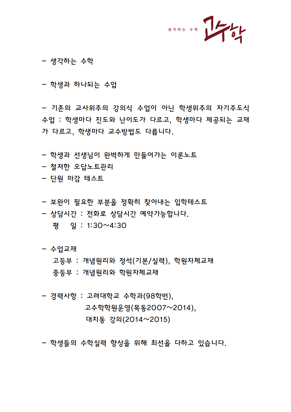 수학토크(Talk)학원 상세정보