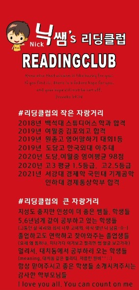 YBM 리딩클럽 영어교육의 현장으로 여러분을 초대합니다.!! 보컬트레이닝으로 우선 아이의 콩글리쉬를 바꿉니다. 저는 리딩클럽에 처음 등원하는 친구들에게 영어학원을 다닌 년수에 상관없이 무조건...