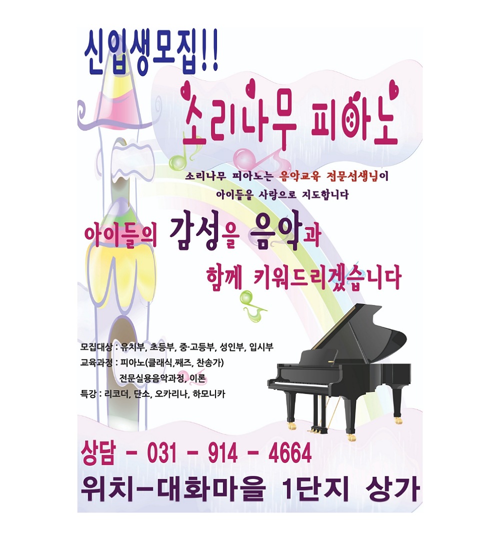 entry=pll 안녕하세요^^ 소리나무피아노입니다. [취미도 실력으로 키우는 음악레슨] 소리나무피아노 교습소 "감성과 창의력을 길러 줄 수 있는 진정한 음악교육을 하겠습니다....