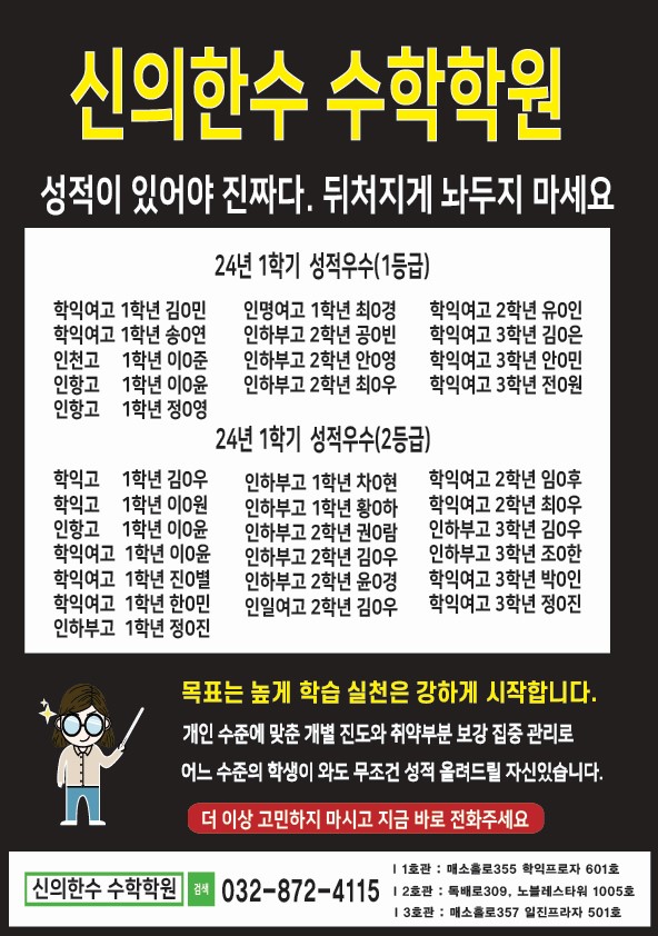신의 한 수 학원장 남영우입니다. 요즘 학기중 수업에 대한 문의가 많아 백마캠퍼스 수업 운영... 정발캠, 식사캠이후 백마캠퍼스 시스템변화를 최후 순위로 진행하고 있습니다. 여러 학부모님께서 원장...