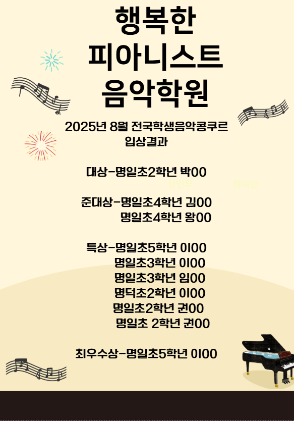 앞으로도 아이들의 속도와 개성을 존중하며, 음악을 통해 성장할 수 있도록 꾸준히 함께하겠습니다 #피아노콩쿨 #학원대회 #대상수상 #광주피아노 #광주음악학원 #매곡동피아노 #매곡동음악학원 #광주기타...