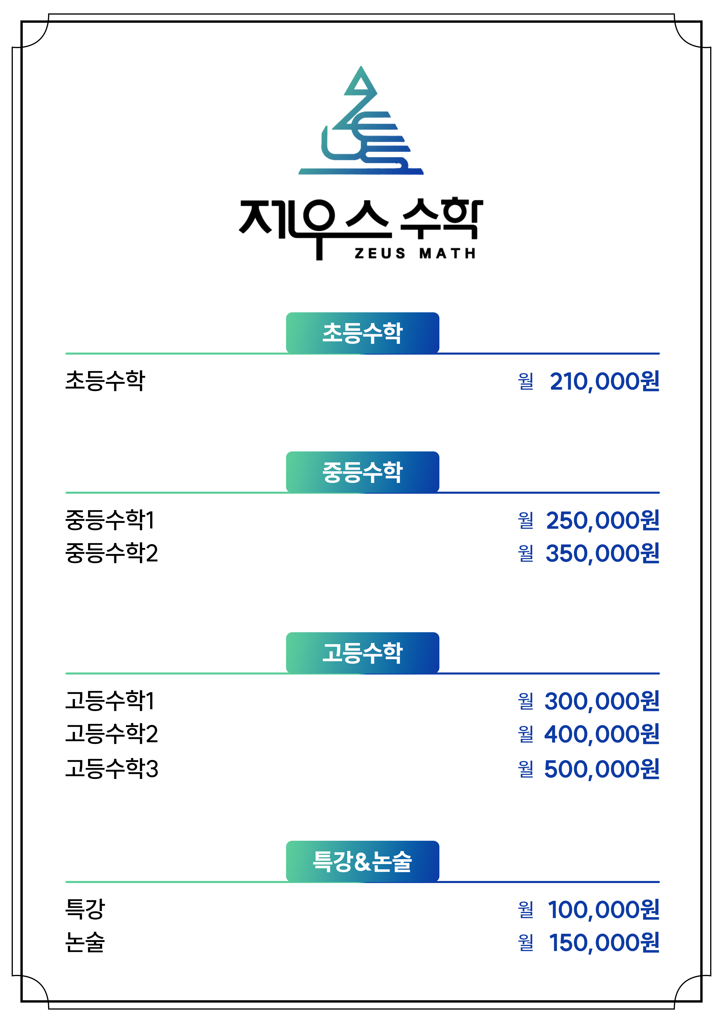소수정예 구리수학학원 제우스