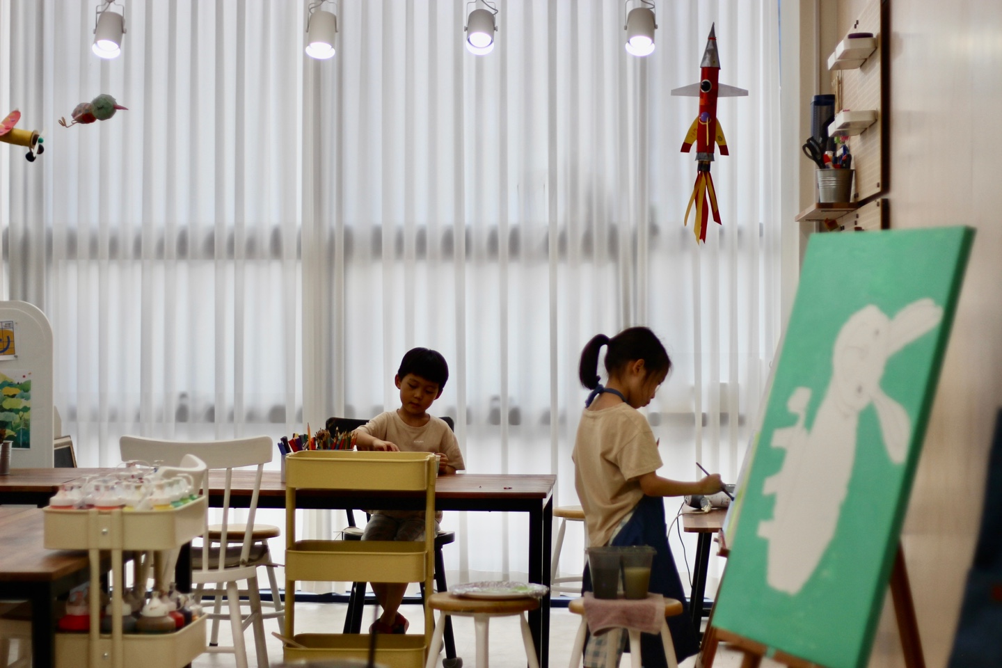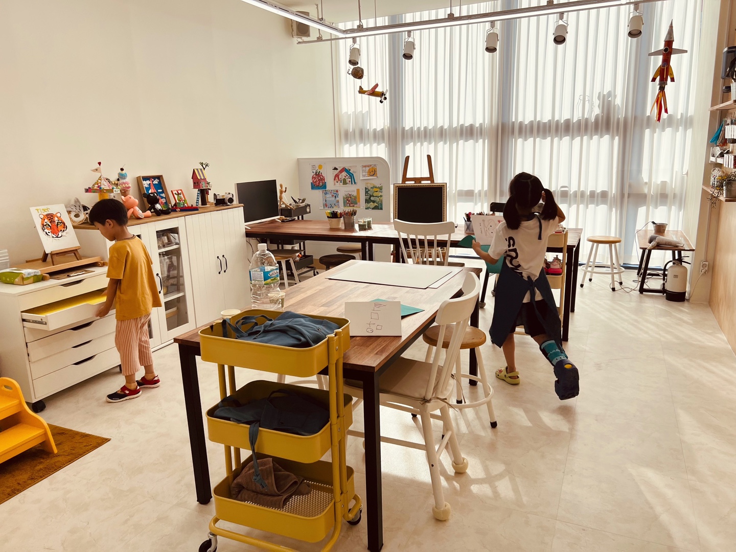 컬러는 차분한 분위기의 딥 컬러를 사용해도 좋고 골드로 고급스러운 예술 감성을 표현해도 좋습니다.... 화이트 컬러 12평 키즈 미술교습소 인테리어 No.5554 전체 인테리어 사진 보러 (▲) 화이트톤 실내...