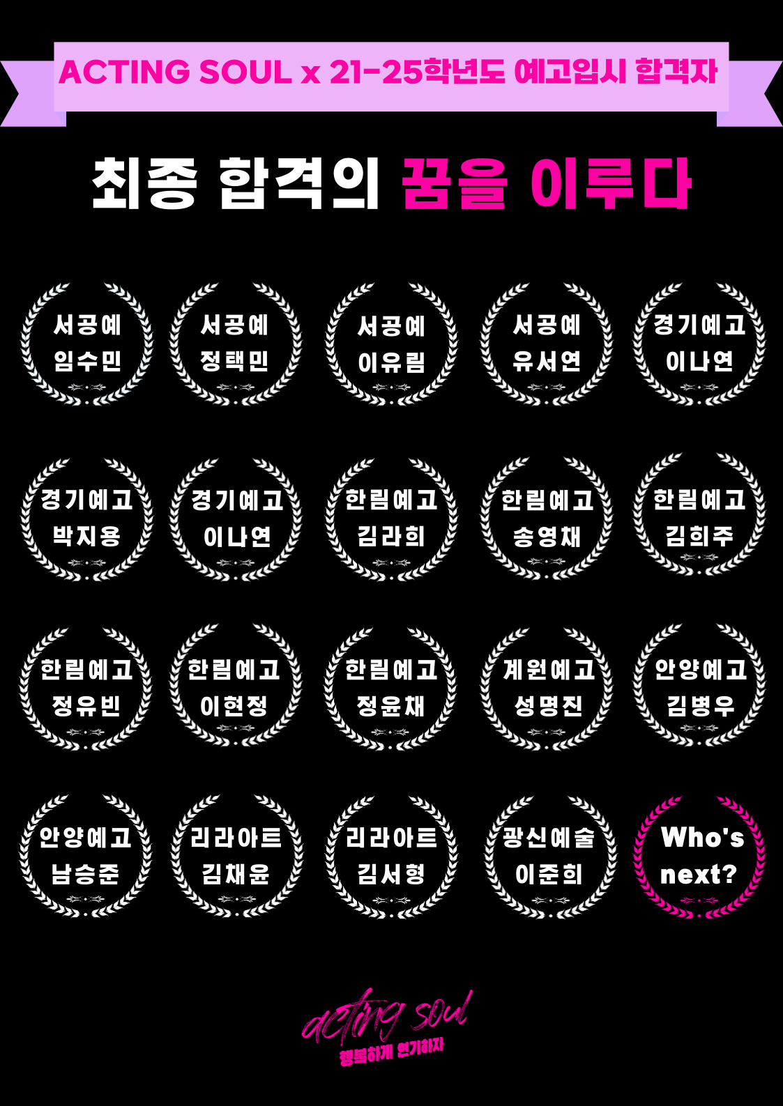싸이액터스연기학원 강남구 압구정로46길 27 4층 (신사동) 연극 더블유(W)액팅연기학원 강남구... 연극 더블유(W)방송연기학원 서초구 서초중앙로 42 , 8층801호 (서초동, 블루핀타워) 연극 (주)...