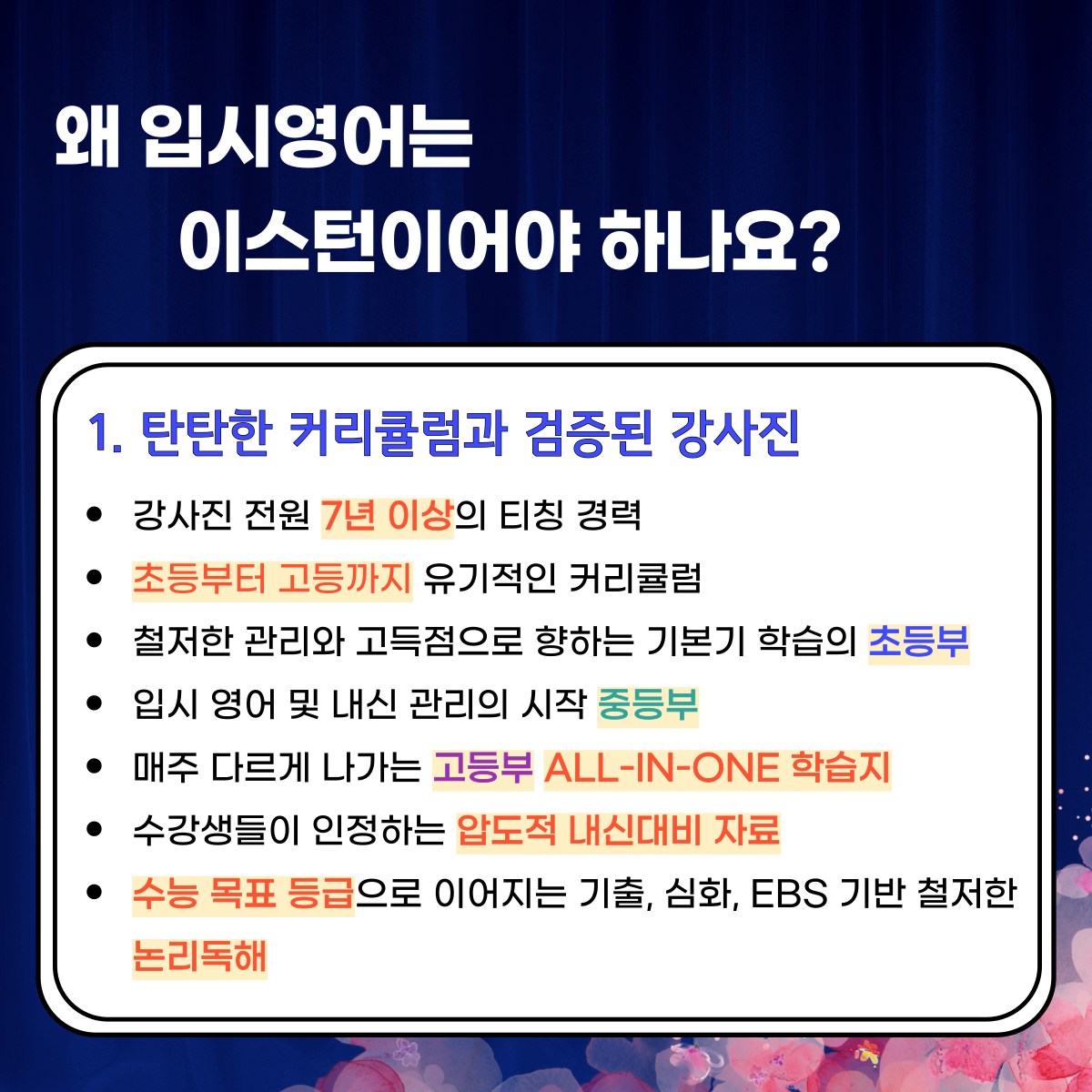 안녕하세요 학원리뷰어 입니다 오늘은 광명에서 입소문난 학원인 이스턴어학원에 대해 리뷰해보도록 하겠습니다 광명에는 영어학원 뿐 아니라 수학, 국어,과학 학원 정보 및 중고등 내신관리, 모의고사...