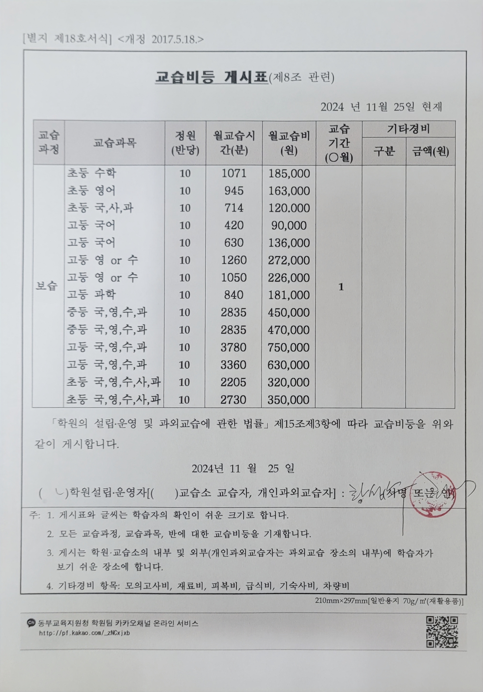 수원 영통 보습 교육과정 학원설립운영등록증 발급 사례