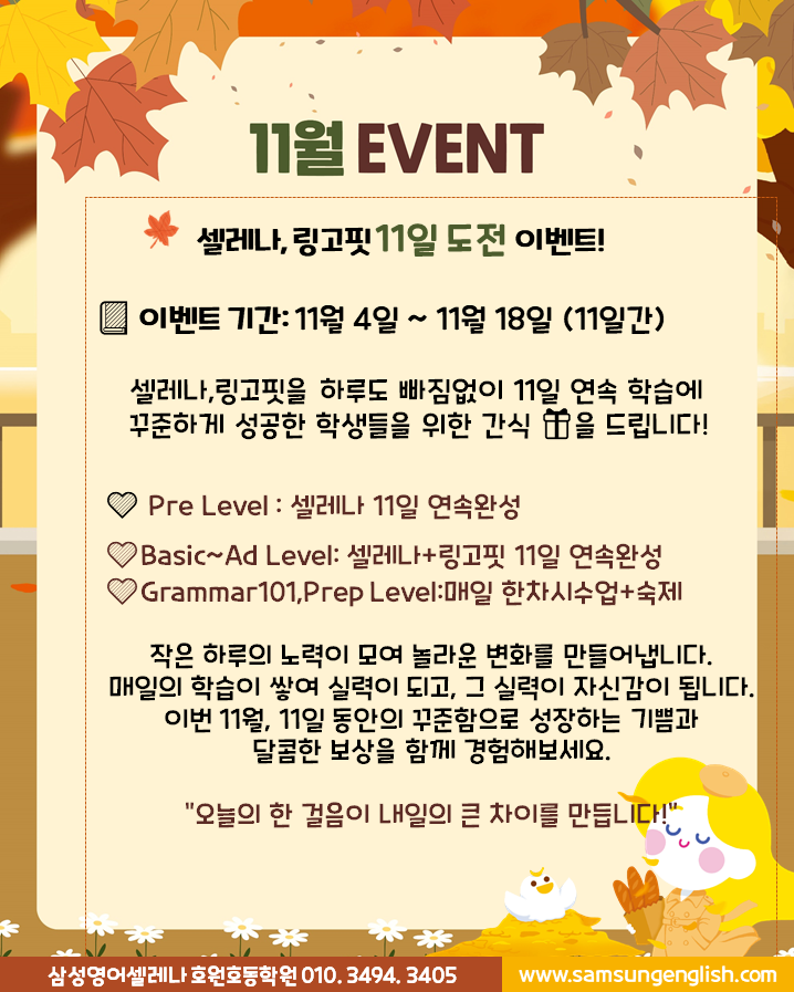[쌍동초 영어학원 삼성영어셀레나] r영어학원 이벤트 추천...