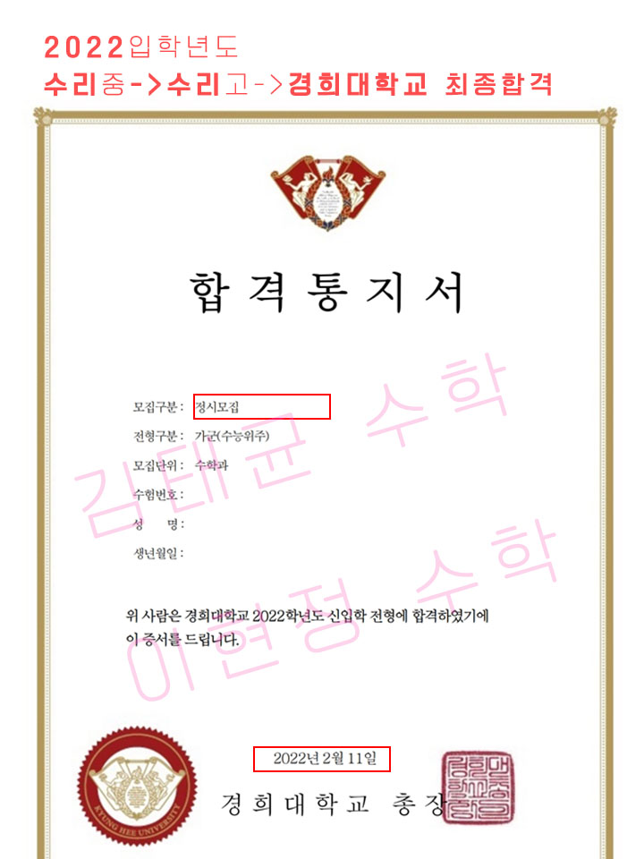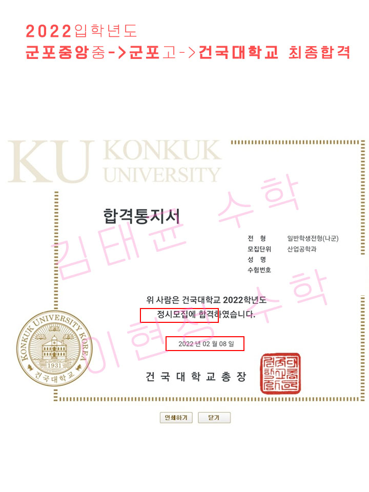 합격기원, 추천!} 김태균수학학원 안양 재수학원, 합격률 최고
