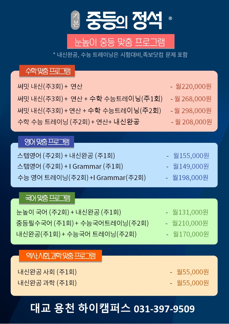[하이캠퍼스용천] 당동 군포초, 용호중 학원, 중등 수행 대비...