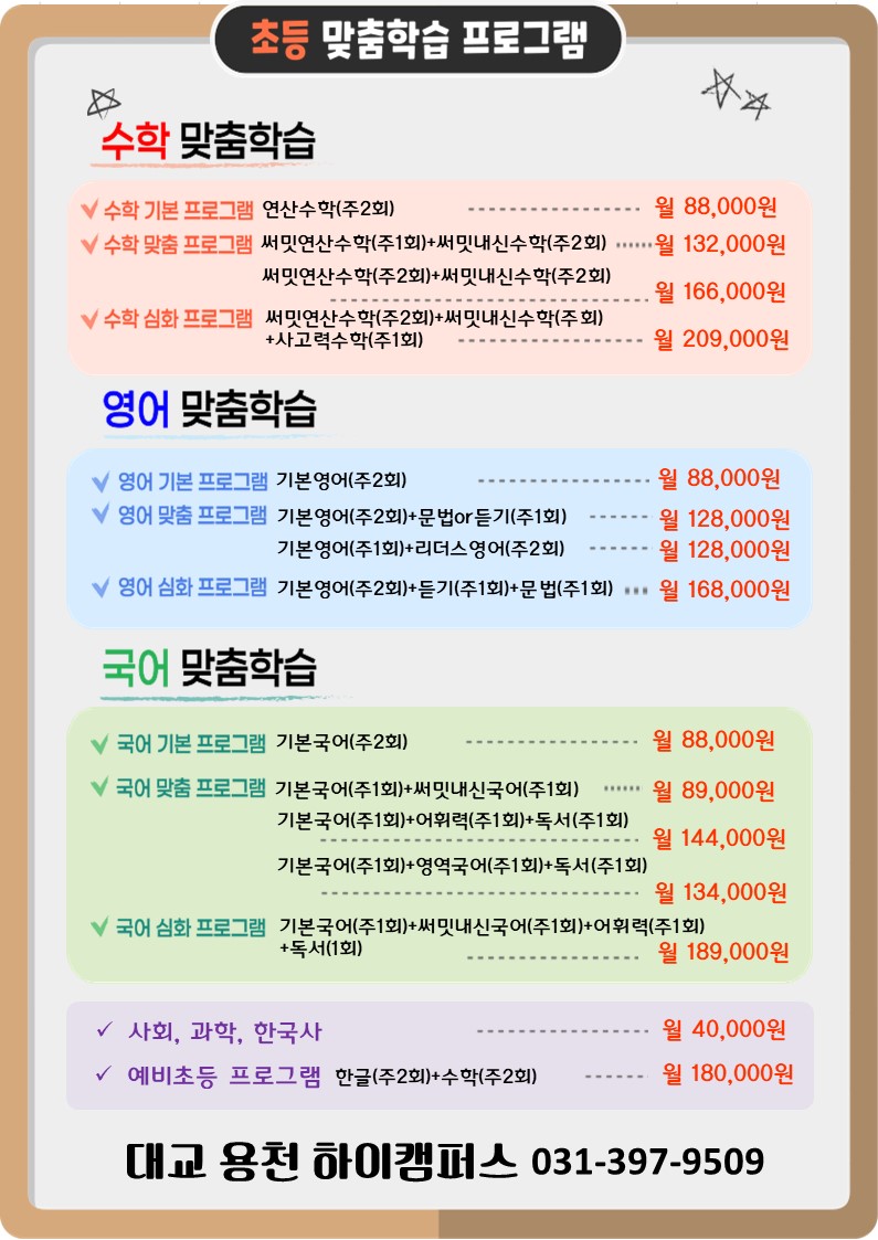 안녕하세요~ 대교 용천 하이캠퍼스입니다! "Hi ~ High~" 세상에서 가장 큰 학교, 대교에서... 단장한 대교 하이캠퍼스 용천학원 많은 관심 부탁드립니다! 대교 하이캠퍼스 용천학원 ☎031-397-9509 학습 문의는...