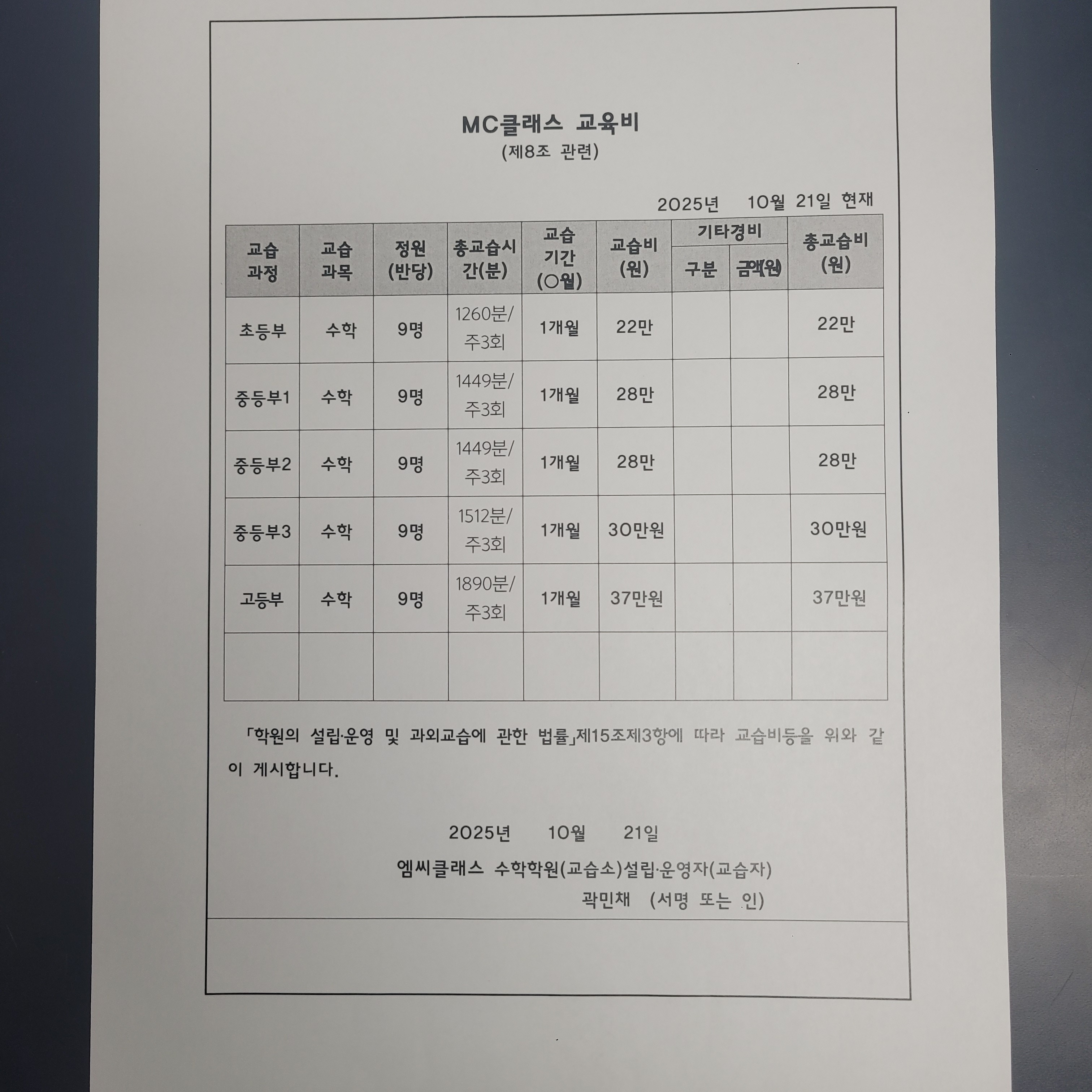 엠씨클래스수학교습소 상세정보