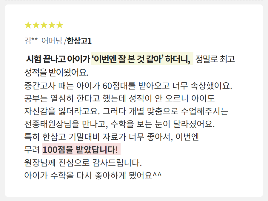 기말고사) 전문 수학학원 PK대치스마트에듀 수학 내신대비 시스템