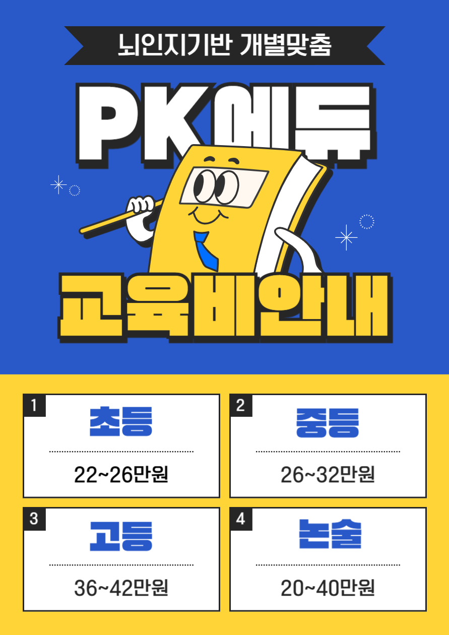PK스마트대치에듀 학원에 대해서 소개 드립니다. PK대치스마트에듀 학원은 수년간의 연구, 수천 명의 데이터 기반의 시스템으로 내신관리부터 수능까지 그리고 국영수부터 전 과목까지 국내 유일의 스파르타식...