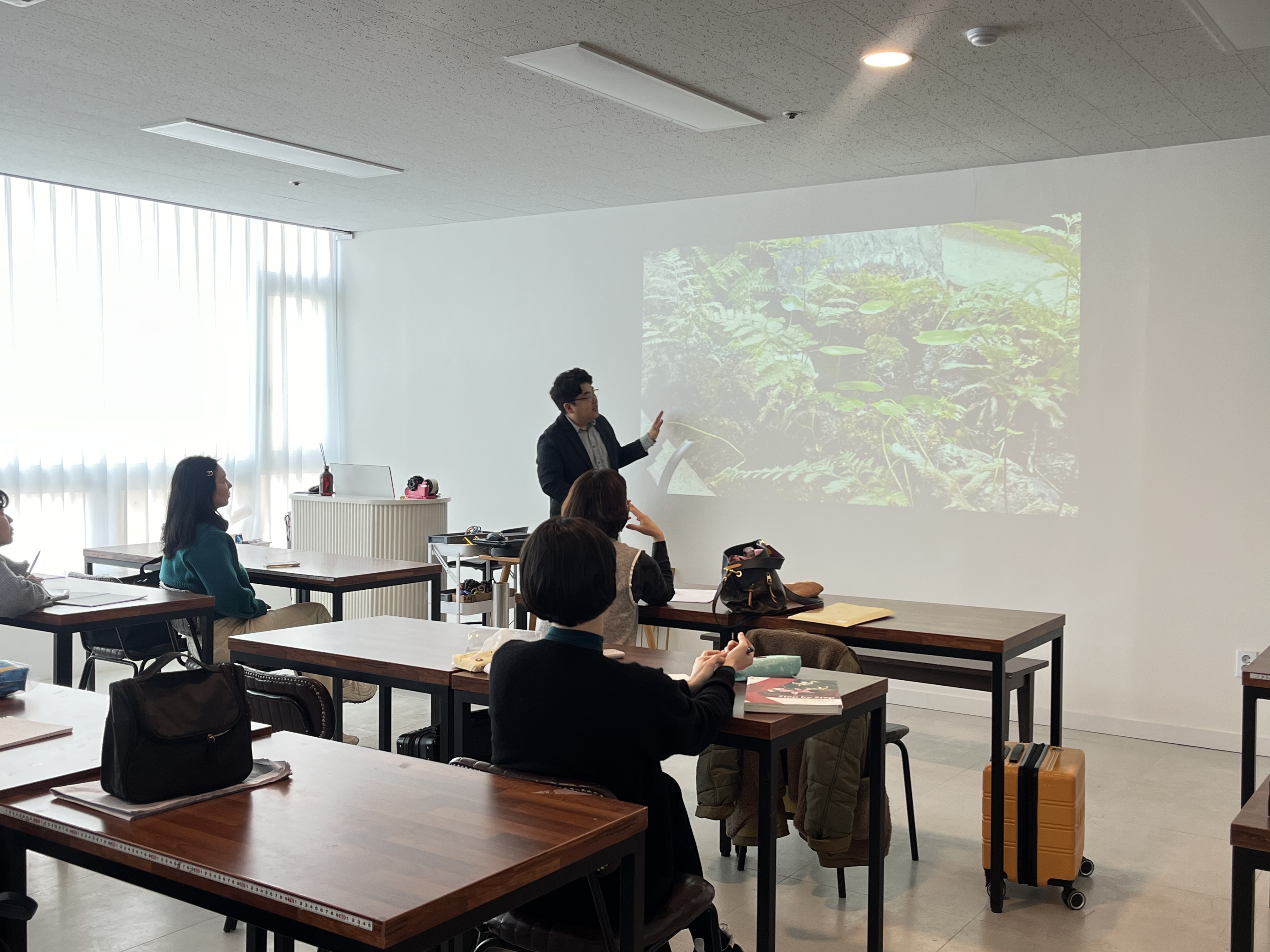 토요일마다 녹영꽃예술학원 다녀오면 그 날 배웠던 수업 내용을 기록하는데, 최근에 제주도 다녀오고... 꽃 학원에 도착하면 손소독및 큐알코드를 합니다. 그러곤 뉴꽃이 뭐가있나 학원이 뭐가 바꼈나 살짝쿵...