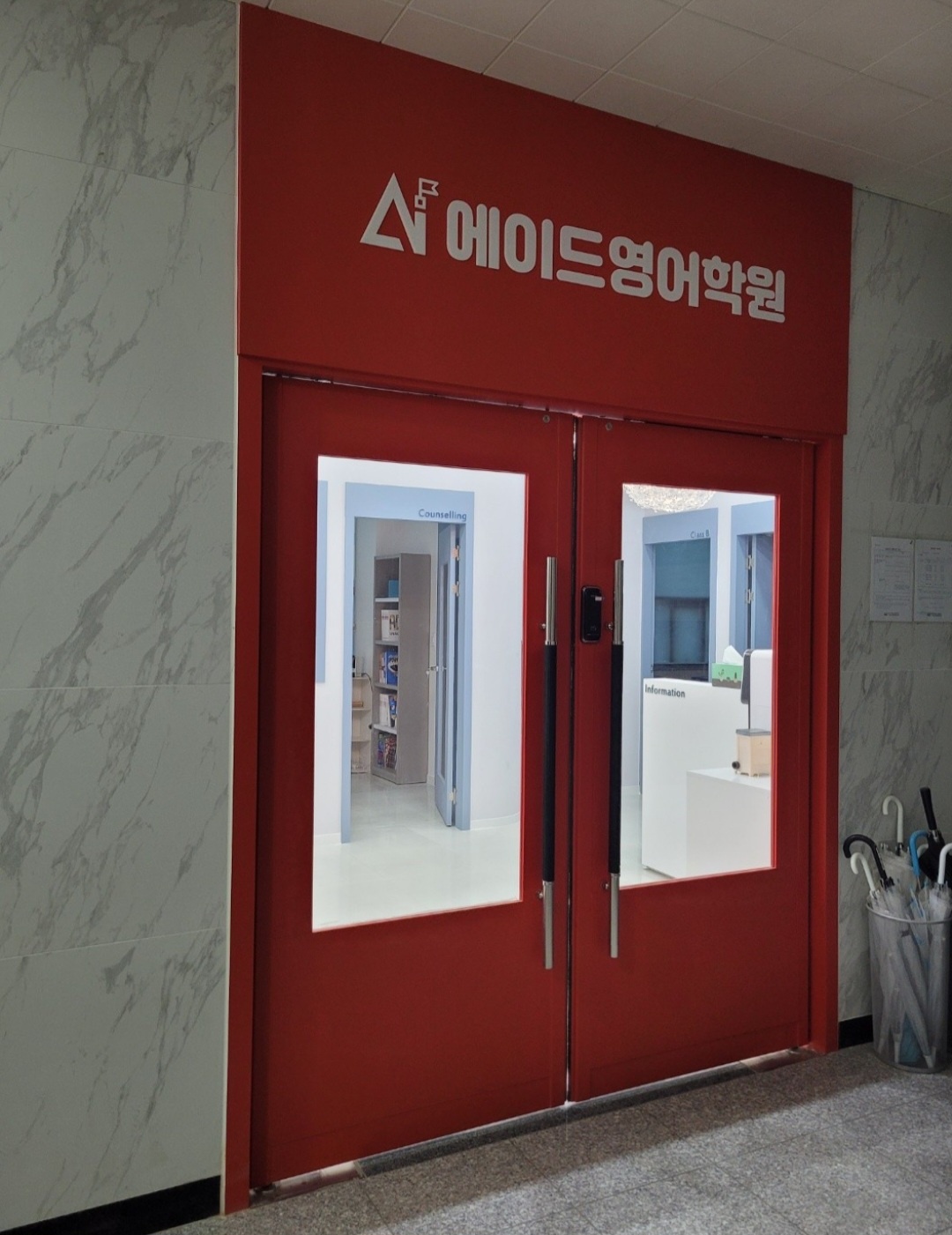 양산영어학원인테리어 전문 현디자인입니다. 오늘은 어제 소개드렸던 에이드 영어학원의 시공후 모습을 가져와보았습니다. 그럼 함께 보러가보실까요?! 입구 학원의 출입구는 복도를 지나면 나타나는 구조로...