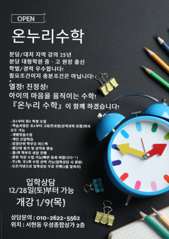 분당 서현동 수학학원 학부모가 추천 feat 온누리수학