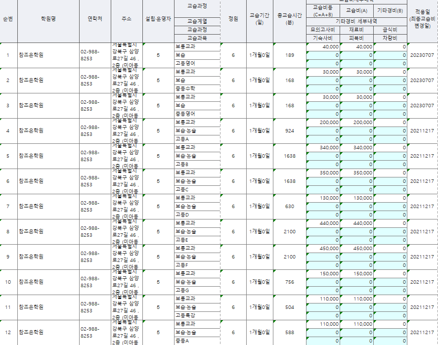 전국 입시학원 주소록