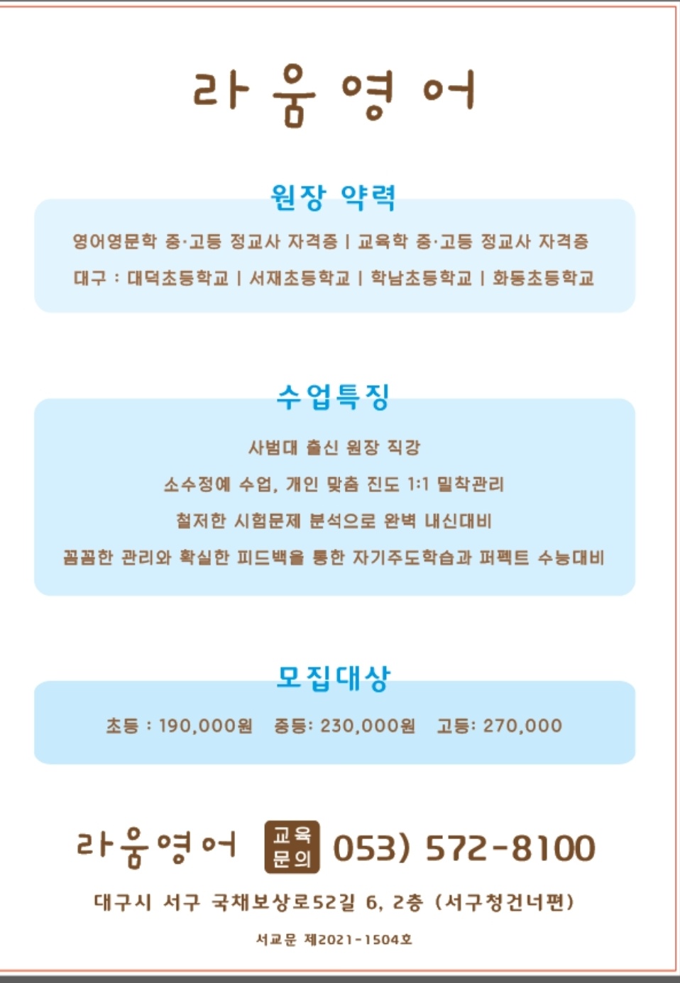 항동영어학원 첫 시작은 리드앤톡라움영어교습소에서