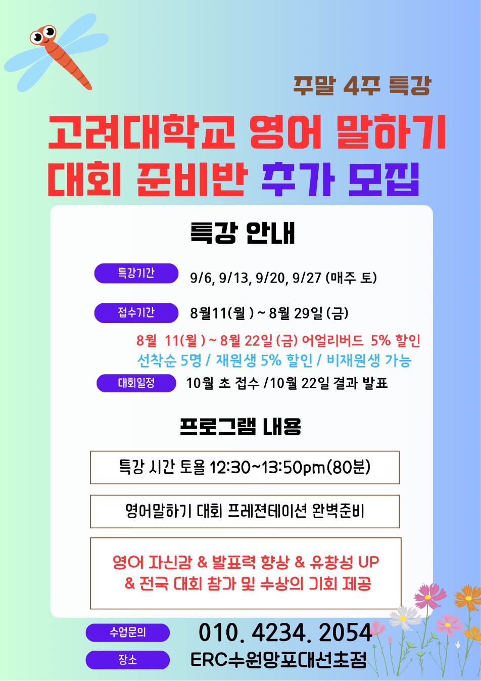 ERC 영어독서클럽 수원망포대선초점 영어 교습소 수업료 공지...