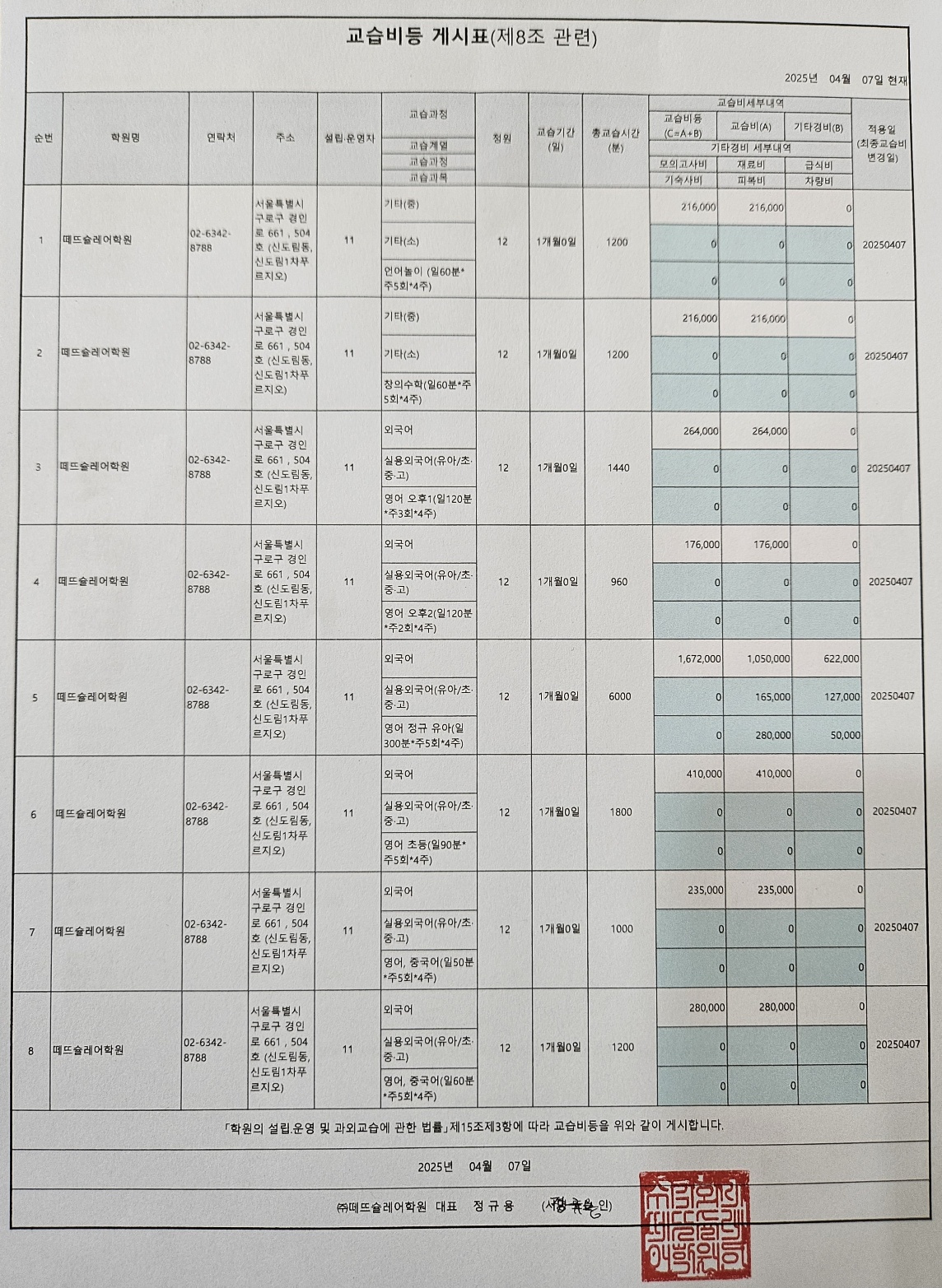 떼뜨슐레어학원 상세정보