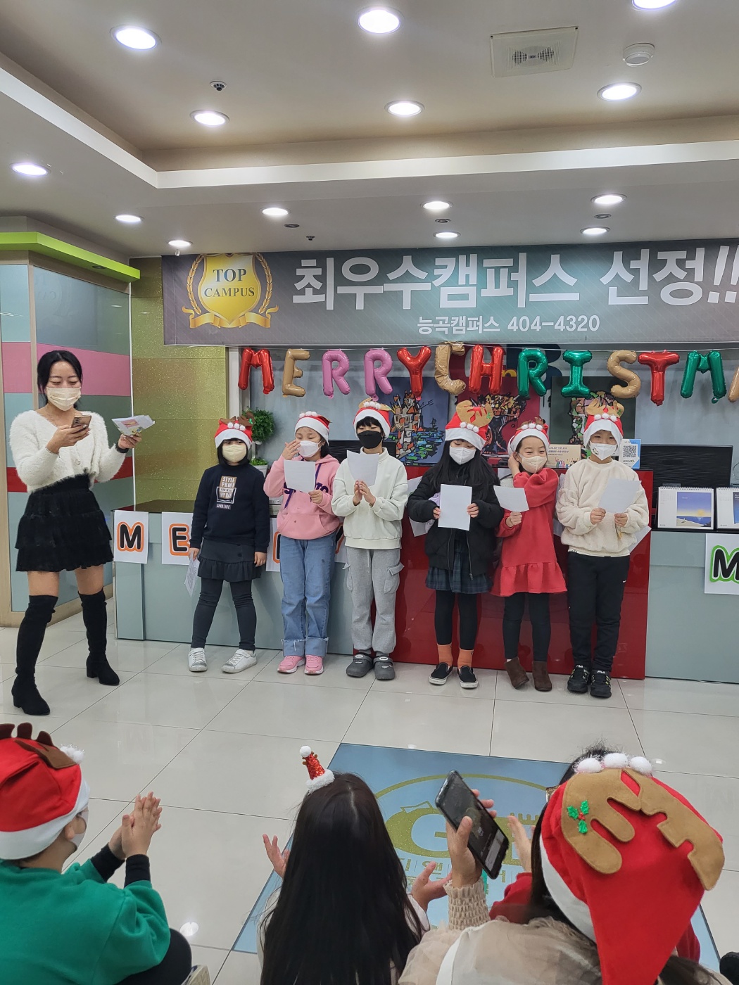 12월 24일능곡 지앤비 어학원에서, 크리스마스특집도전️골든벨 행사가 있었습니다✨ 캐롤송도 신나게... 분위기 가득~ ✨안전하게 규칙을 잘 지키고 행사에 적극적으로 잘 참여해준 지앤비 친구들멋져요❣️
