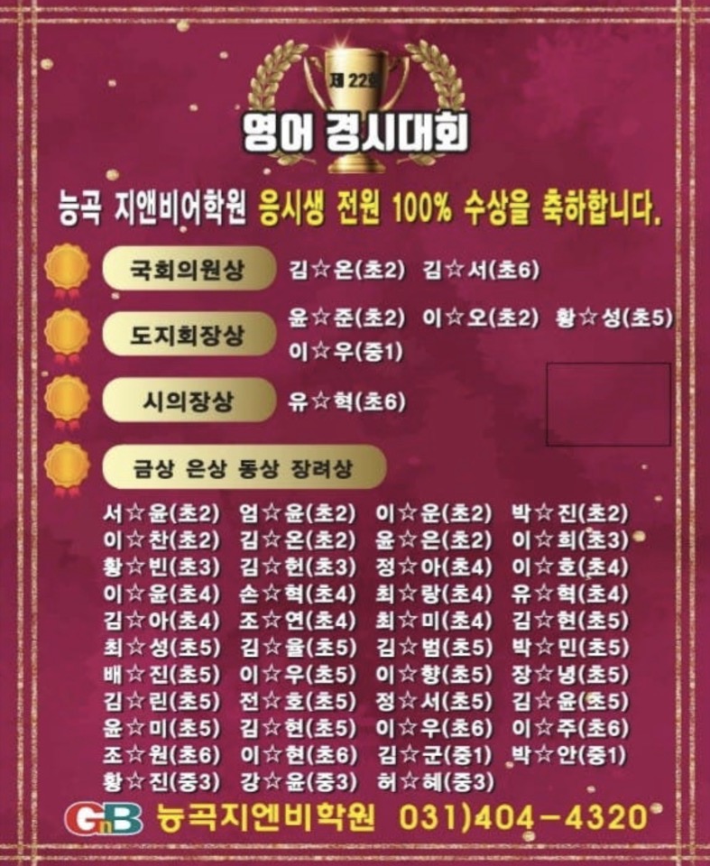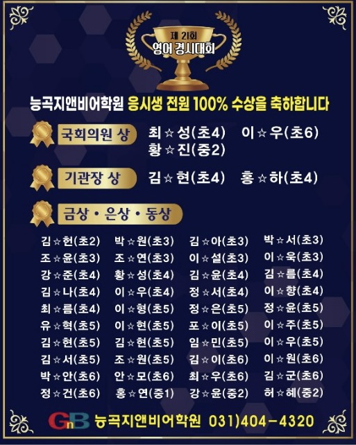 2023년 능곡지앤비어학원의 소식입니당! 우리친구들이 열심히 노력한 결과물입니다:) 많은 칭찬과 격려부탁드립니당!