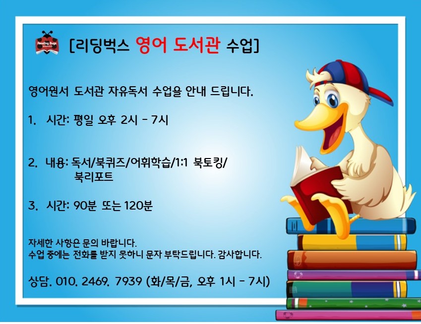 안녕하세요 중계 영어도서관 리딩비입니다~ 날이 많이 추워지고 벌써 겨울방학 시즌이... 출발을 ‘문법’이 아닌 ‘독서’로 시작하세요 아이의 생각이 자라는 영어, 중계리딩비 영어독서학원 입니다.