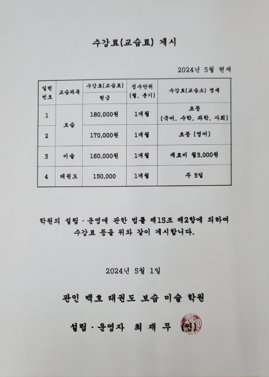 백호보습학원 상세정보