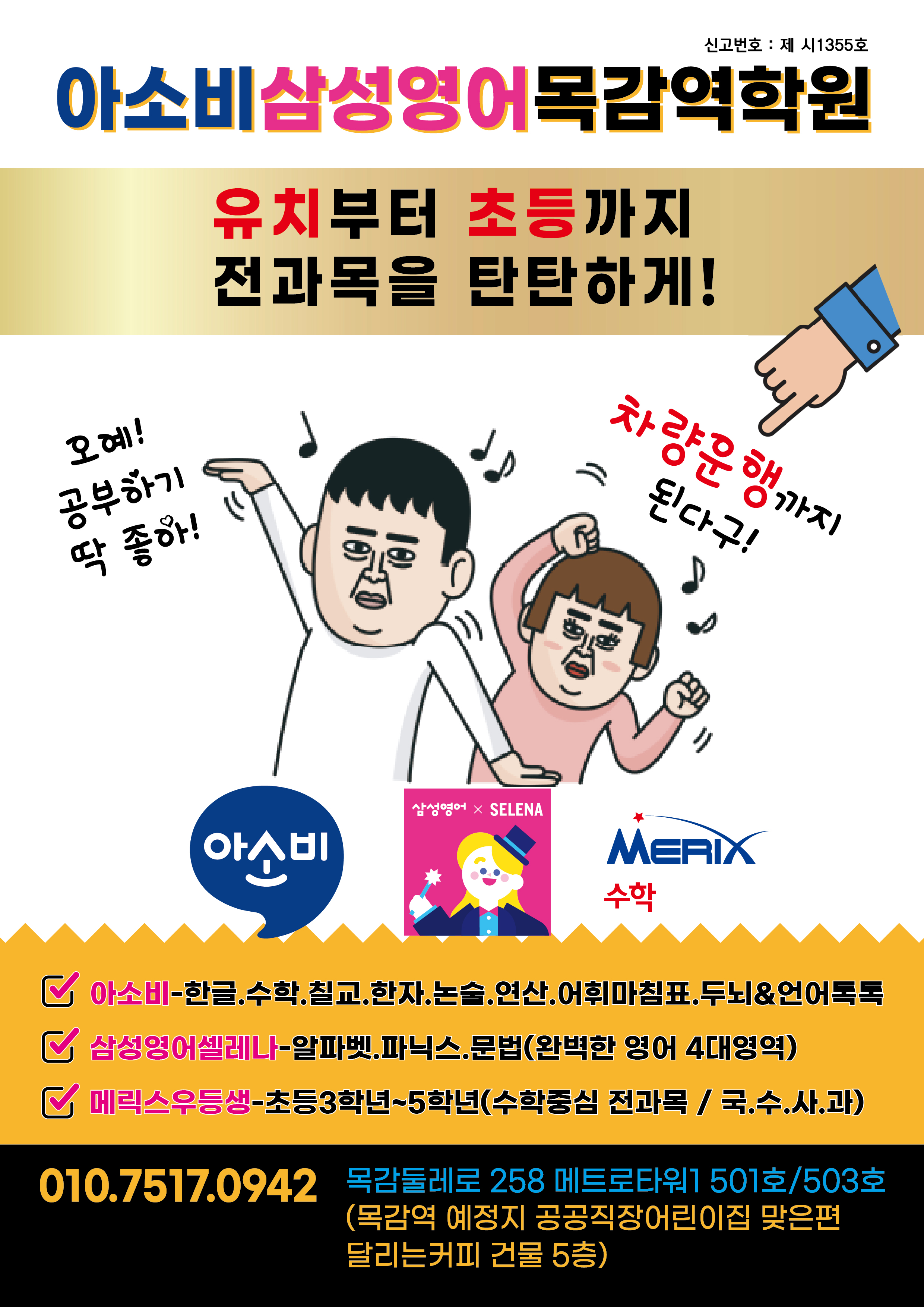 아소비삼성영어목감역학원에서는 아소비로 시작해서 삼성영어와 메릭스우등생으로 전과목까지 탄탄하게 (유치부터~초5까지) 학습할 수 있습니다. 아소비삼성영어목감역학원 입회/상담문의 : 010. ****. ****...