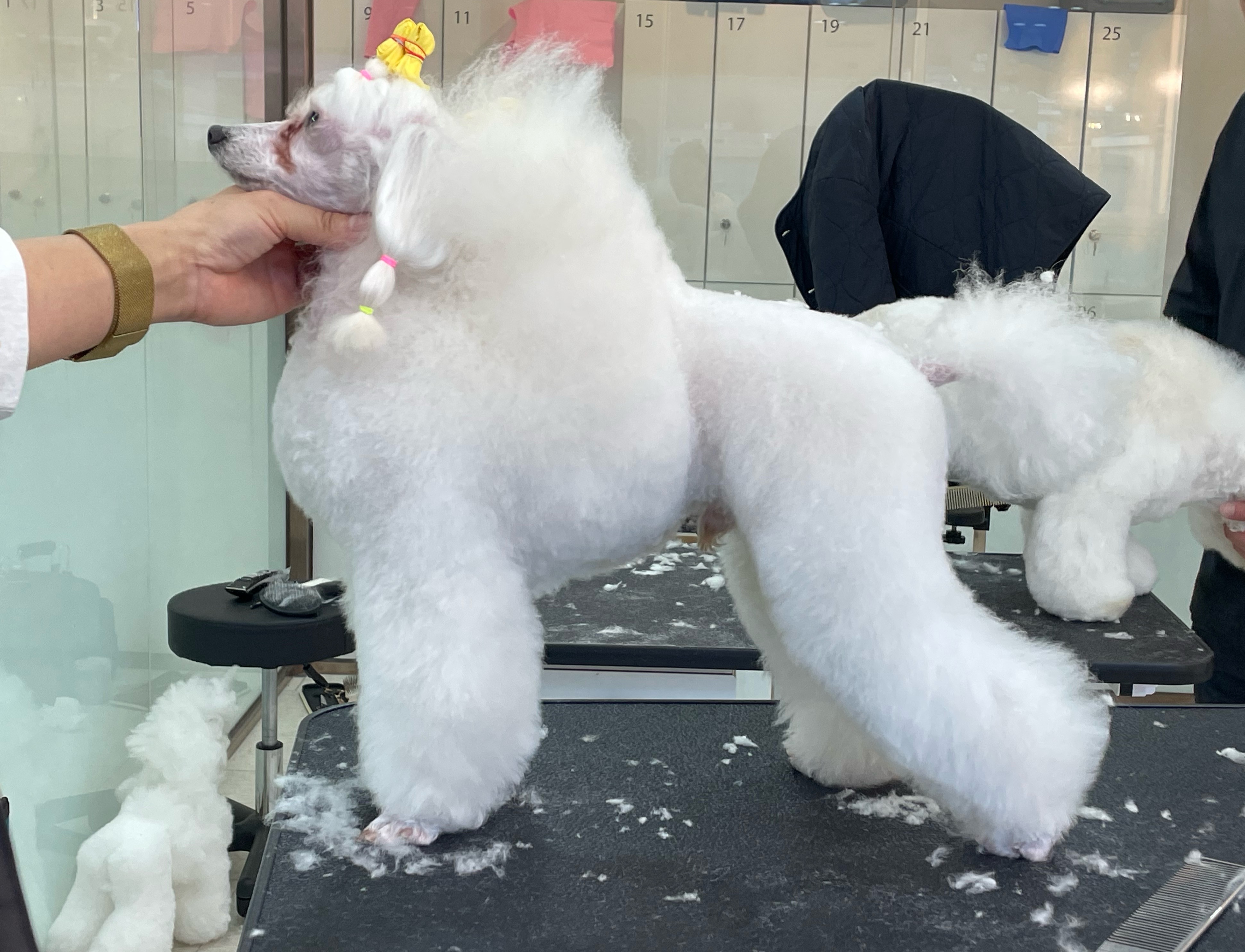 떼루도 모델처럼 서있네요 ㅋㅋㅋ 할땐 힘들었는데 완성품보니까 뿌듯하네여 다들 미감이 너무 좋으심 역시 우리학원 !! #탑애견미용학원 #안산애견미용학원추천 #2급국비지원