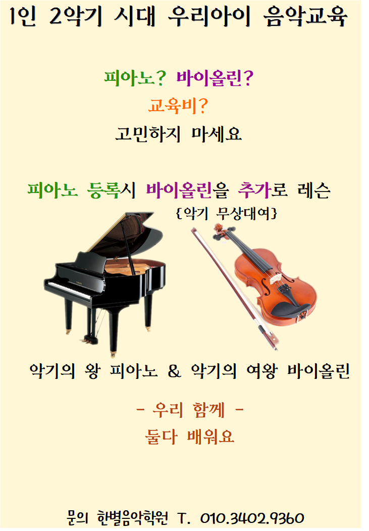 [한별뮤직아카데미 학원] 피아노/ 성악/ 보컬/ 지휘/ 기타