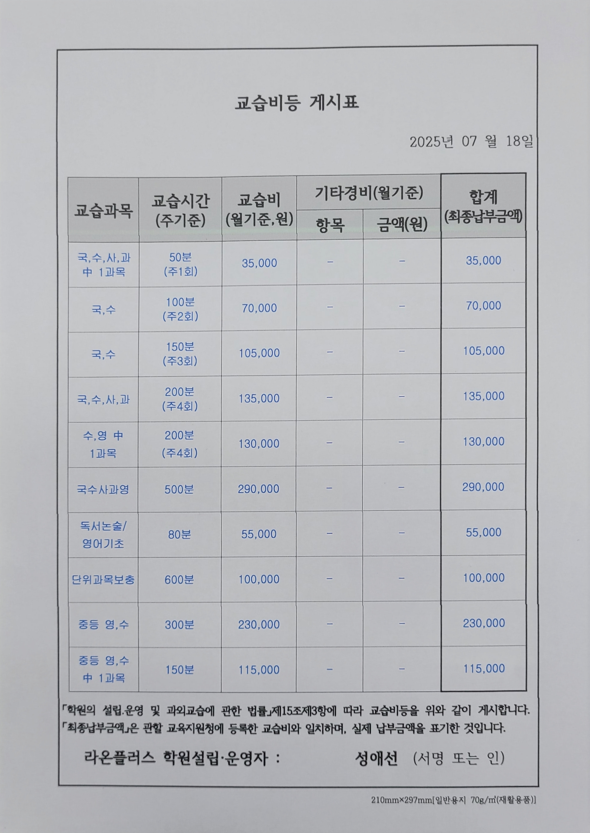 라온플러스학원 상세정보