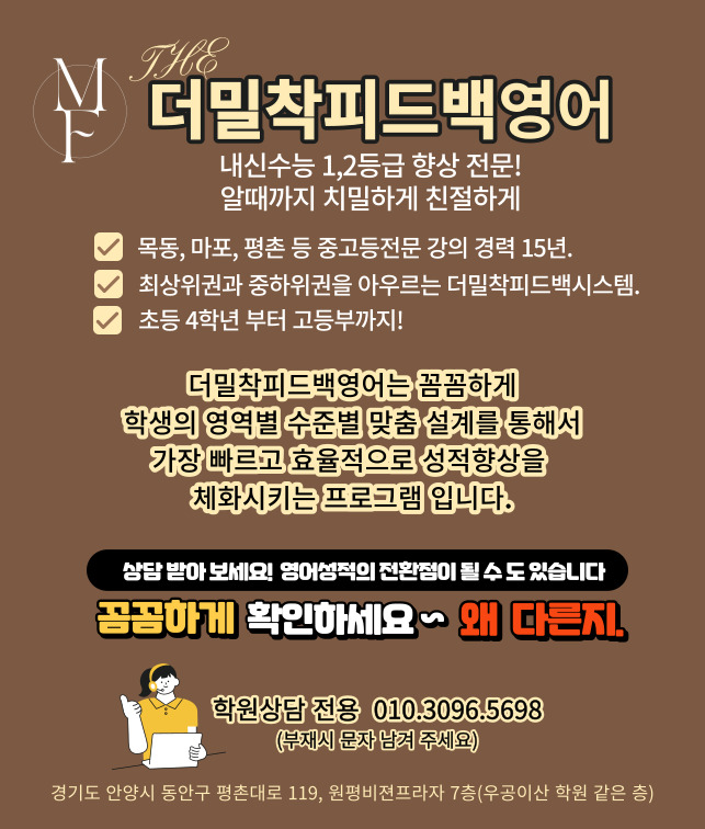 것까지 피드백을 받아 시험 범위들을 본인의 지식으로 만들어야 합니다! 정말 중요합니다. 고등... 명지 고등 내신수능 영어 전문 밀착 꼼꼼 박영주영어교습소! https://blog.naver.com/gritstudy_/223738156719 https...