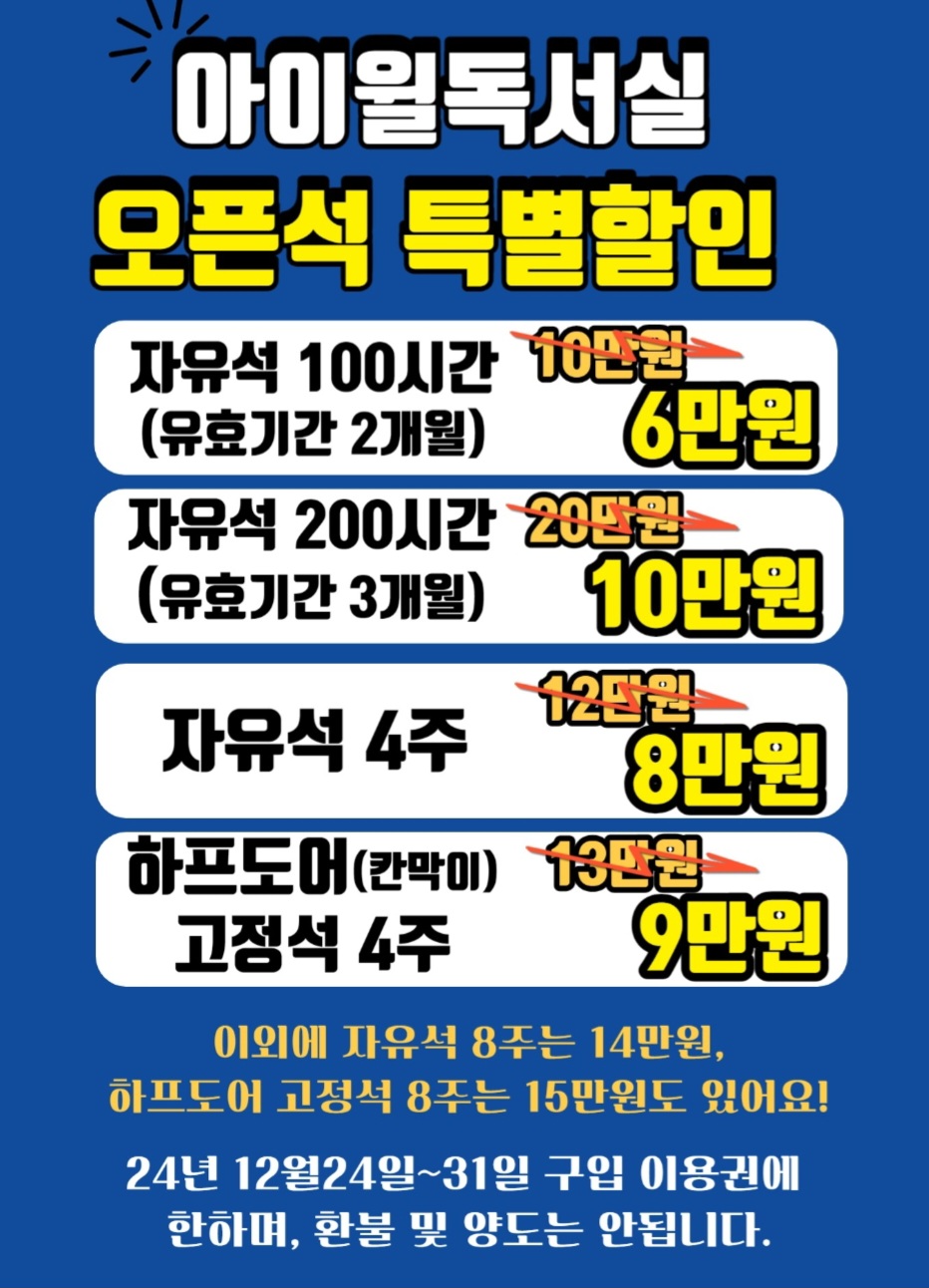 아이윌독서실&스터디카페 · 2024.01.08